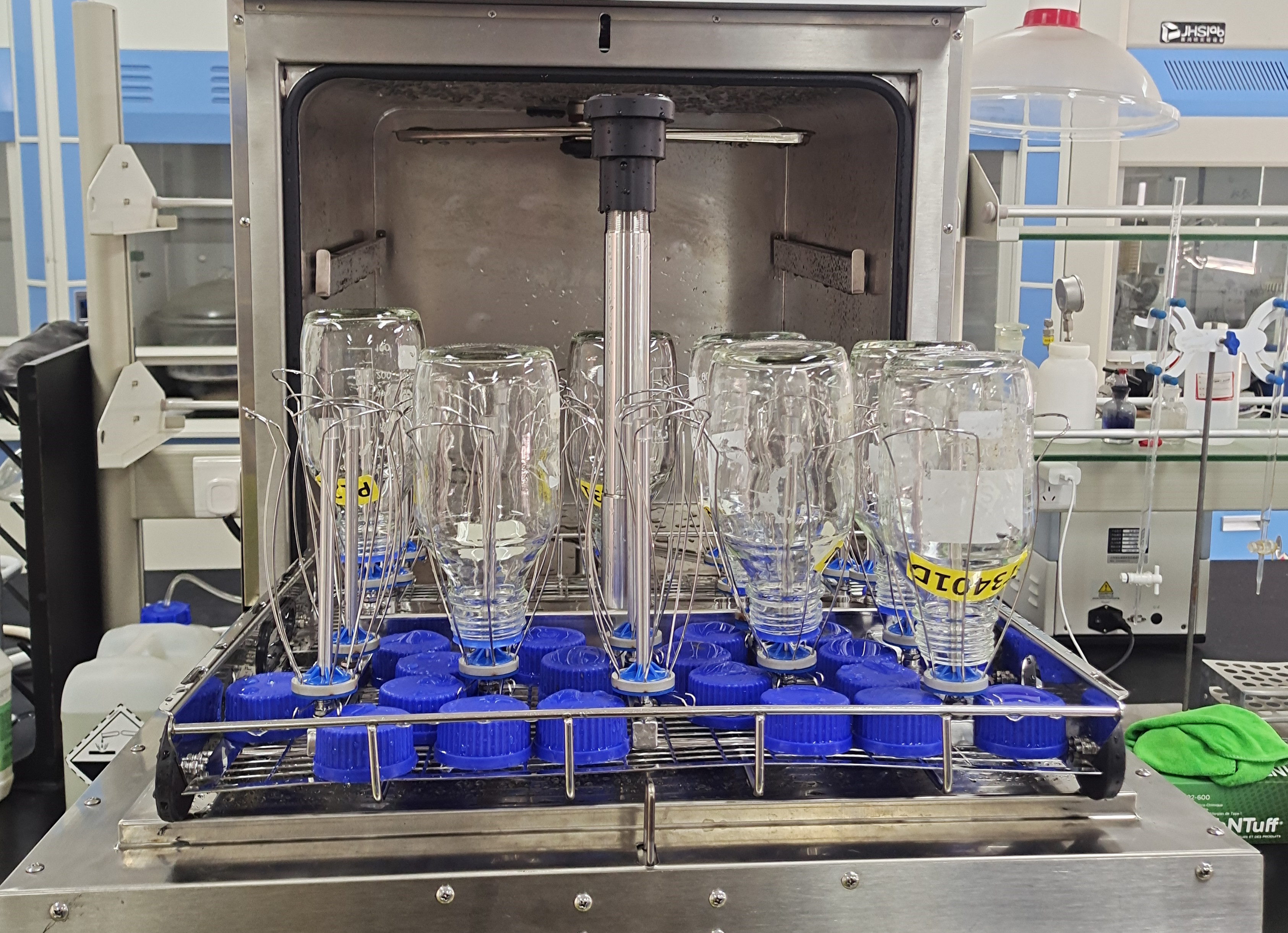 杜伯特實驗室自動洗瓶機搭載上百種清洗模式,能針對合成實驗室的有機溶劑殘留、分析實驗室的痕量樣品吸附、細胞房的生物負載、QC實驗室的交叉污染風險等不同清洗需求,預設出對應的清洗參數組合---從清洗劑配比、水溫控制、清洗時長、漂洗次數、烘干時長等進行參數設置。